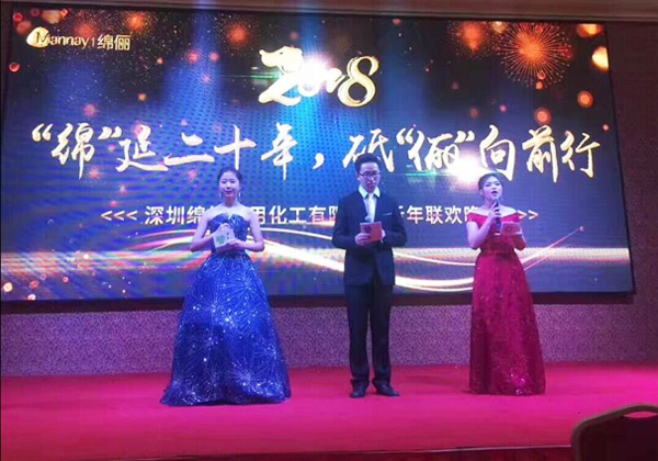 豪情欢歌辞旧岁,喜气开篇迎新年。2018年2月28日,鹏城深圳春意融融,草木欣欣。在这样一个美好而祥和的日子里,以“绵延二十年,砥俪向前行”为主题的2018绵俪日用化工有限公司新春年会,在深圳市龙岗区好天地大酒…