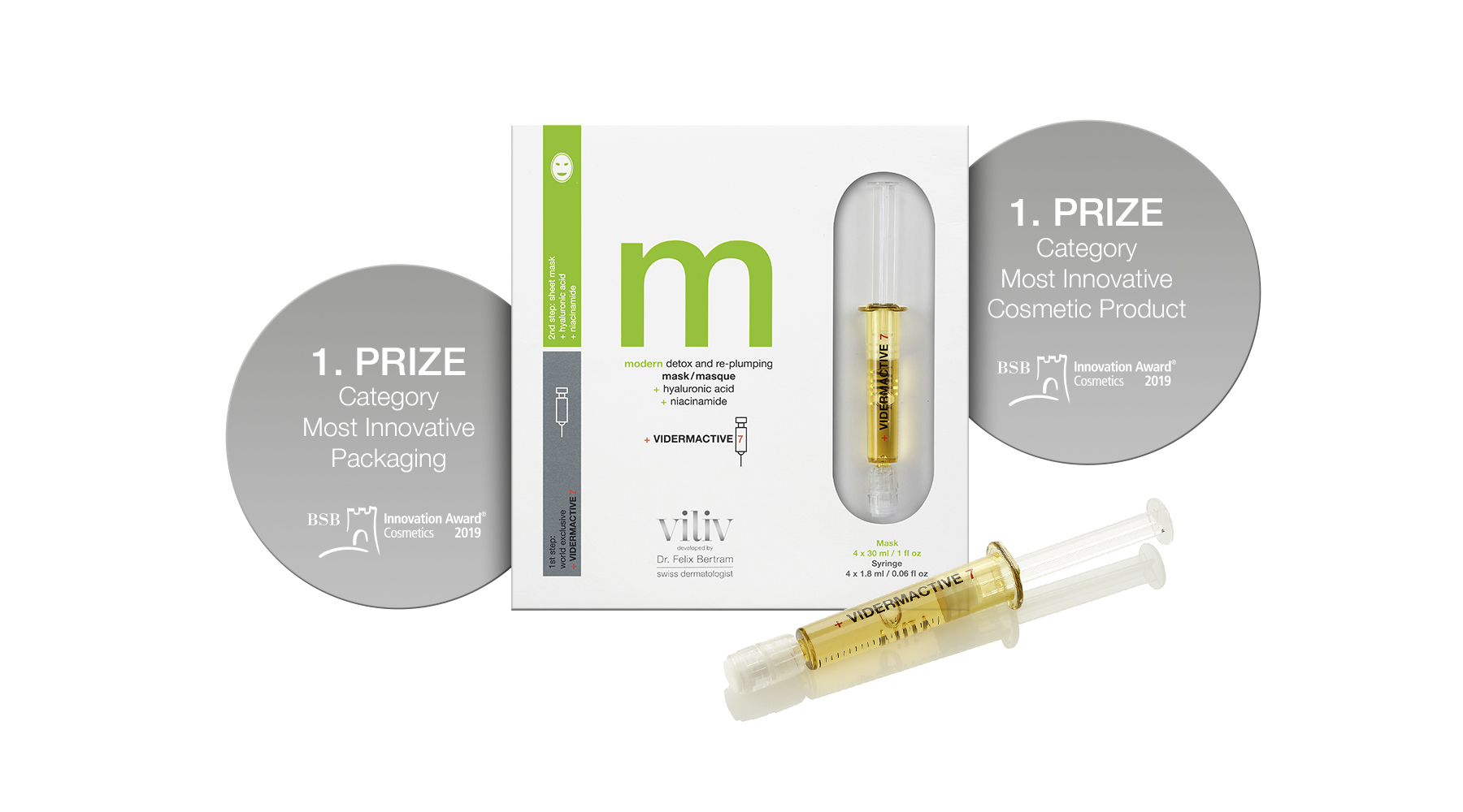 4月2日,第17届 European BSBInnovation Award(欧洲BSB化妆品、天然产品及其化学原料、包装和概念创新奖,以下简称BSB)在法国巴黎举行,绵俪为瑞士护肤品牌viliv(瑞乐肤)设计生产的ODM产品detox and re-plumping…