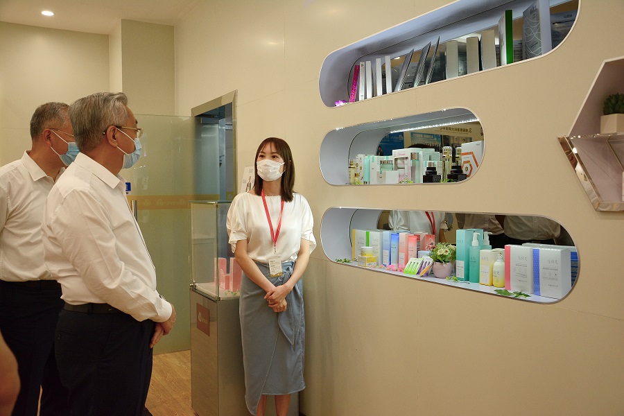 陈良贤副省长一行,饶有兴趣地参观了绵俪的多个系列美妆产品和核心科技原料,并对绵俪的代表性原料——燕窝表现出了浓厚的兴趣,我司人员详细介绍了燕窝的美白肌理和绵俪对燕窝原料历时16年的研究成果。