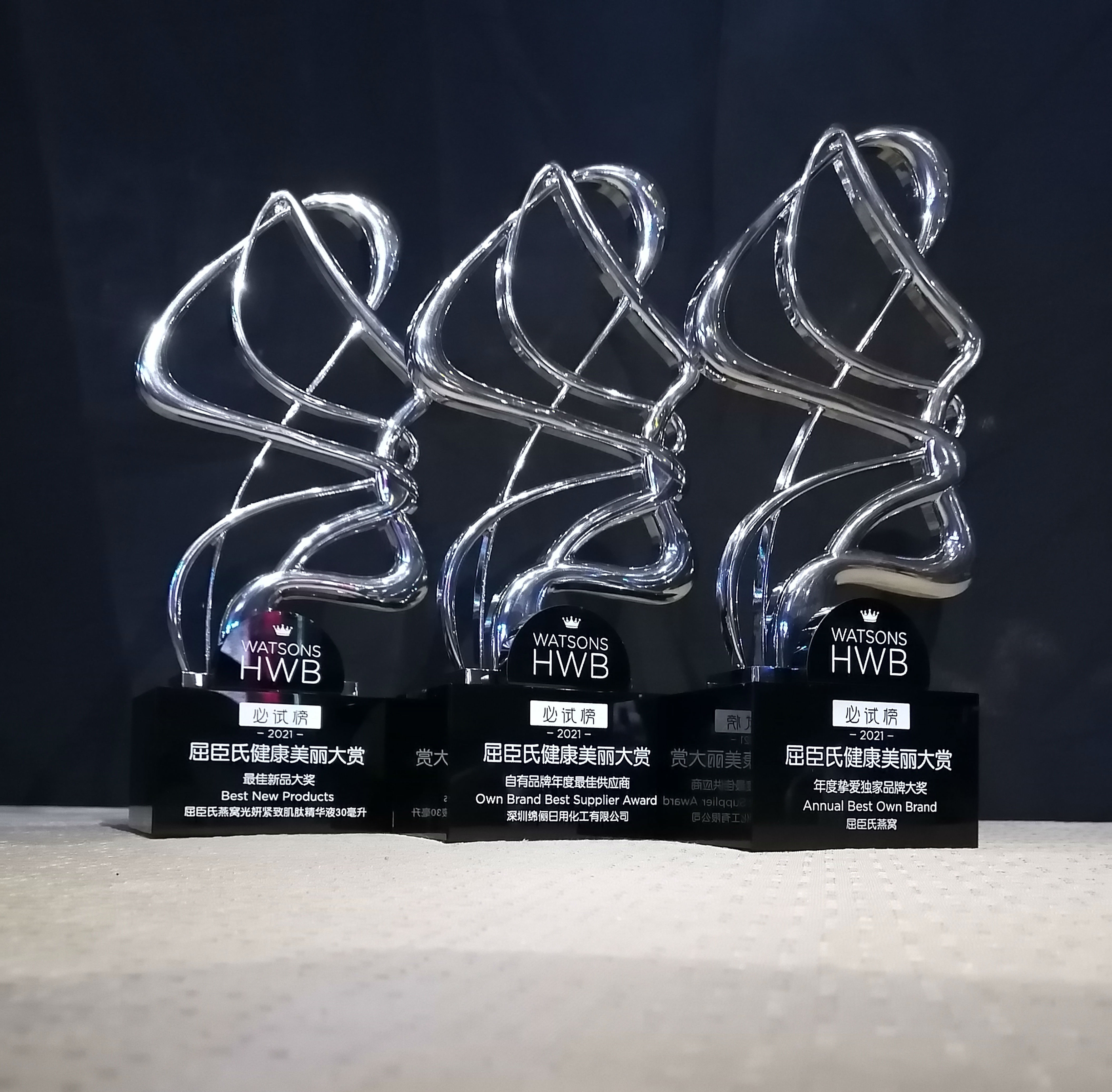 金秋九月,硕果累累,又是一年收获时!在9月17日刚刚闭幕的屈臣氏HWB健康美丽大赏(以下简称HWB)上,绵俪作为屈臣氏多年合作伙伴,受邀参加了此次盛典,并一举斩获了 “最佳新品大奖”(燕窝光妍紧致肌肽精华液30ml)、“年度挚爱独家品牌大奖” (燕窝品牌)、“自有品牌年度最佳供应商” (深圳绵俪日用化工有限公司)三座奖杯!